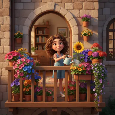 Lital et les fleurs sur le balcon