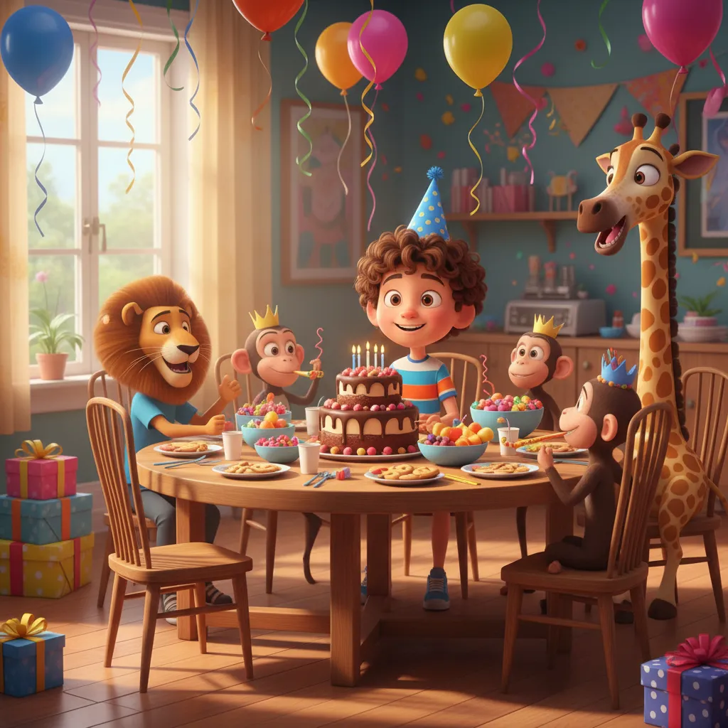 היוםיום ההולדתשלרון.הואבןשמונה.המשפחהמארגנתמסיבהגדולהבבית.אמאאופהעוגתשוקולד.אבאשםבלוניםבסלון.החבריםשלרוןבאיםבשעהארבע.הםמביאיםמתנותיפות.כולםשריםהיום יום הולדת.רוןשמחמאודהיום.הםאוכליםעוגהושותיםמיץ.זהיוםנהדר.